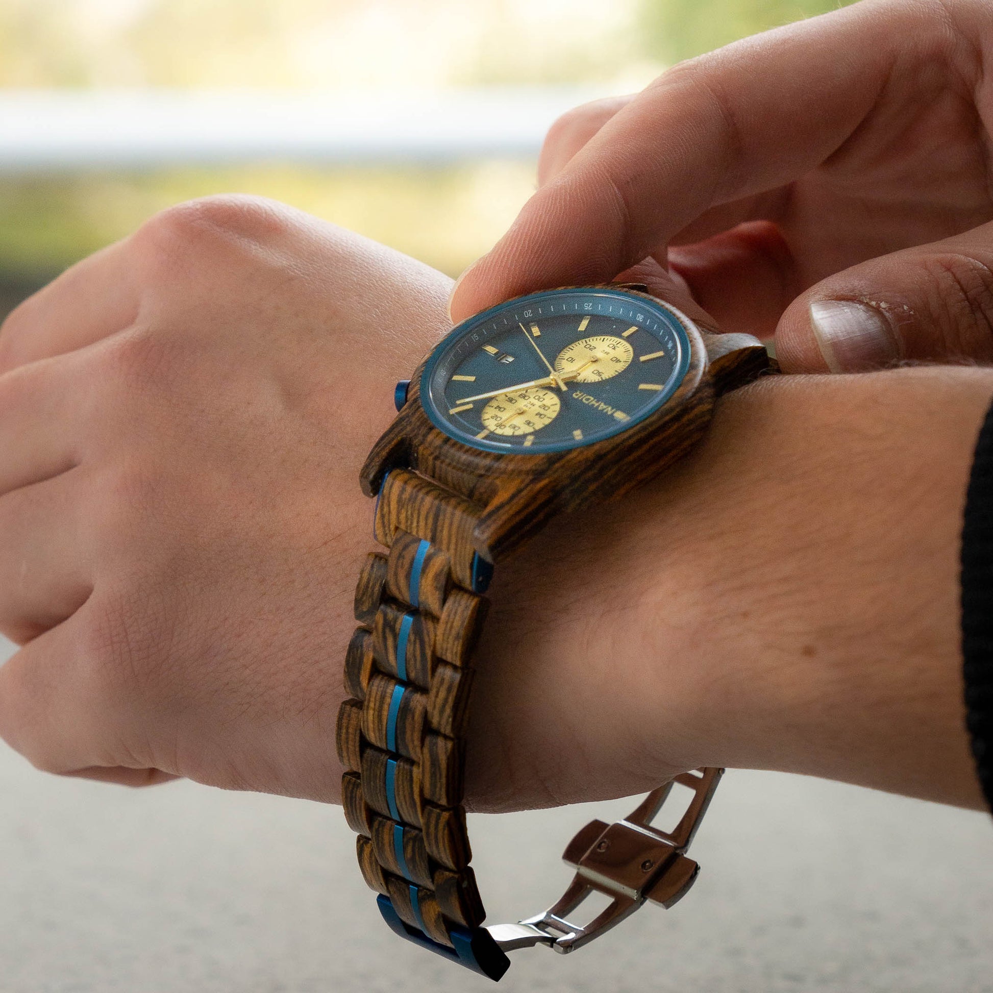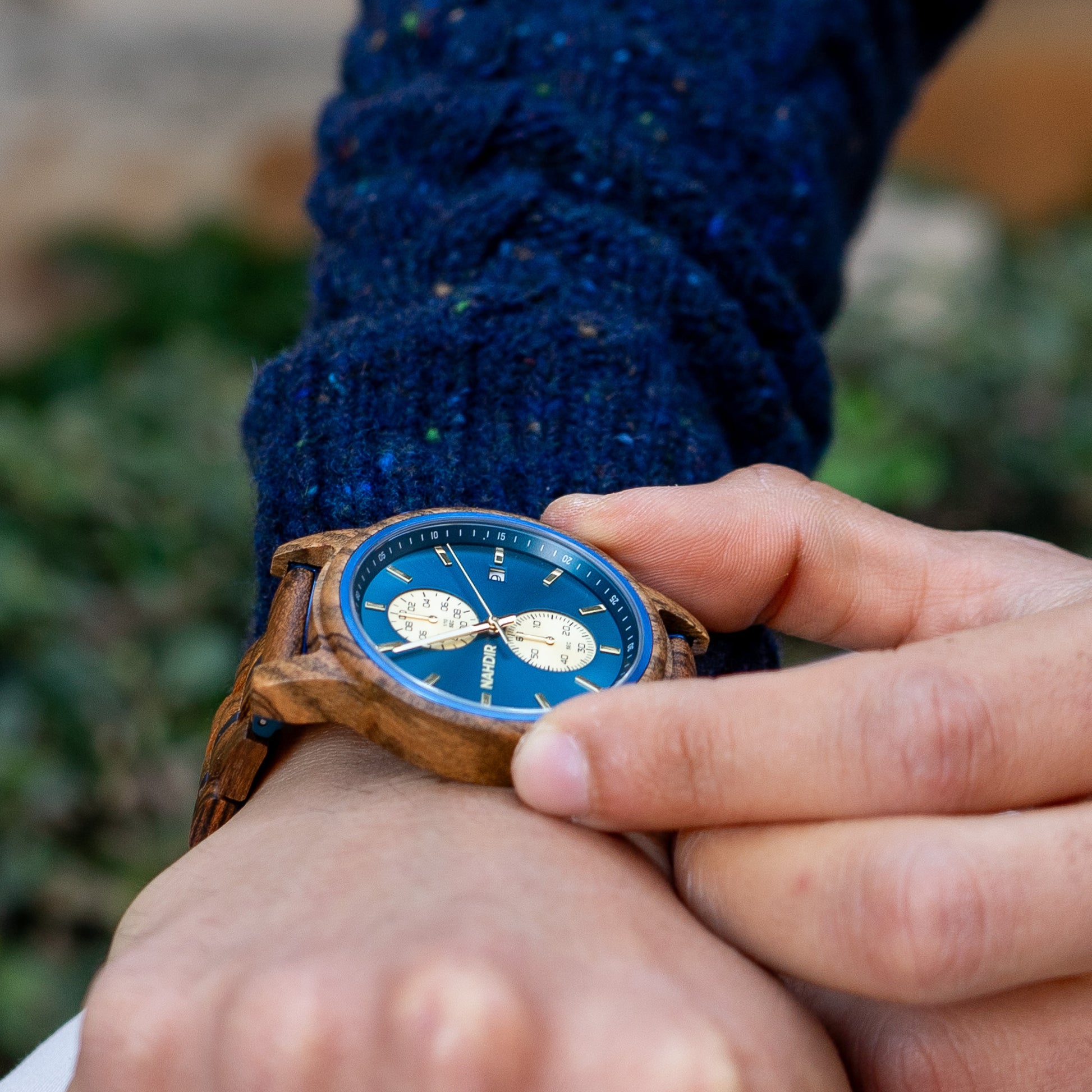 Nuestros relojes están meticulosamente tallados a mano utilizando solo madera seleccionada de fuentes sostenibles.