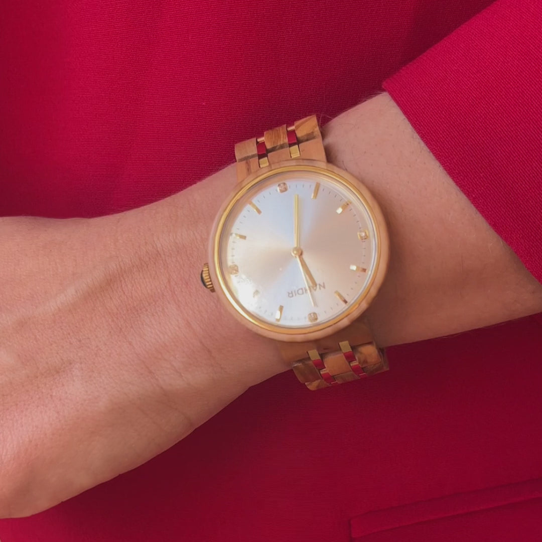 Me ha enamorado completamente. Su diseño es ligero y femenino es perfecto para mi muñeca. Además, la madera tiene un acabado tan natural y bonito que combina con cualquier outfit!!