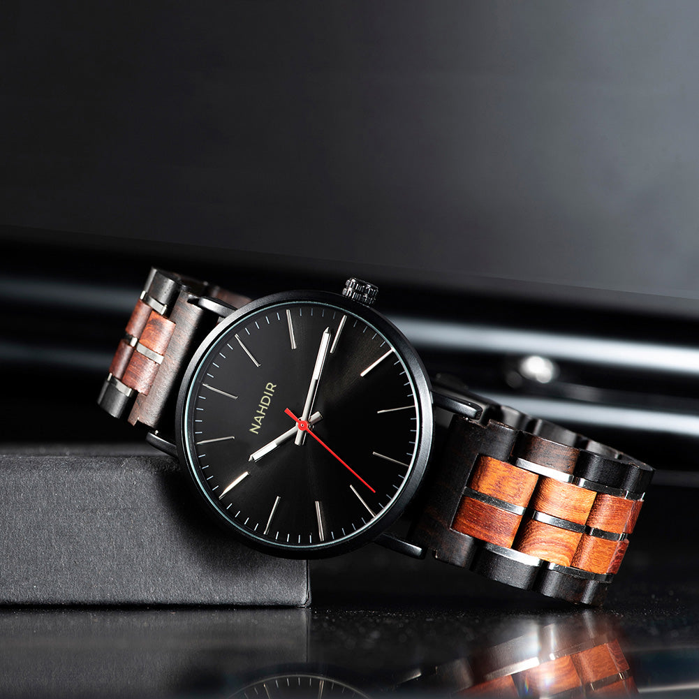El Safari Redwood combina madera negra africana con sándalo rojo, generando un contraste cálido, intenso y lleno de vida. La madera oscura aporta fuerza y presencia, mientras que el sándalo rojo añade ese detalle vibrante que convierte a este diseño en algo único. Un equilibrio perfecto entre elegancia minimalista y espíritu salvaje.