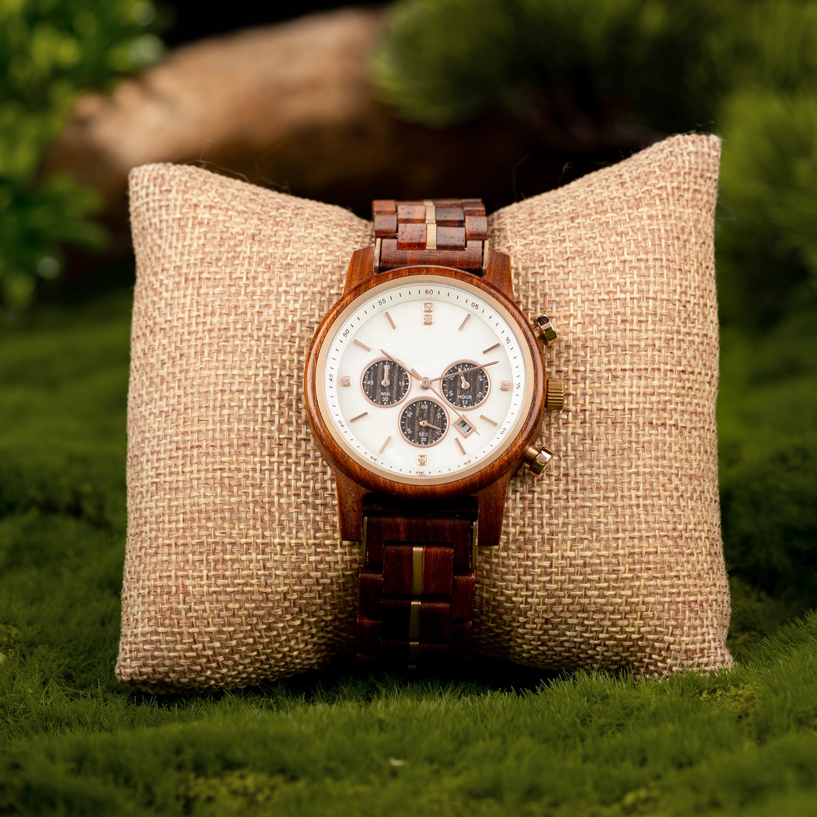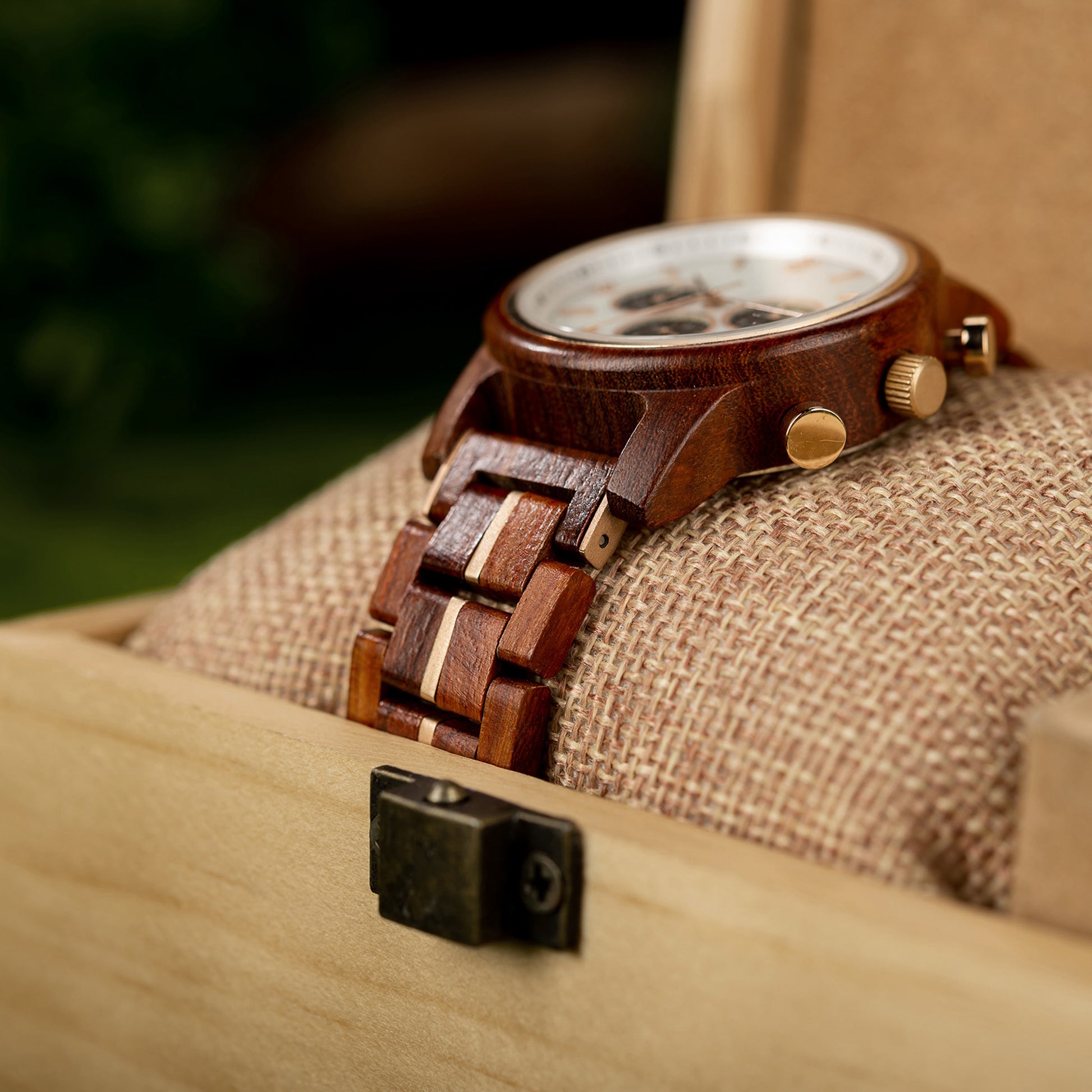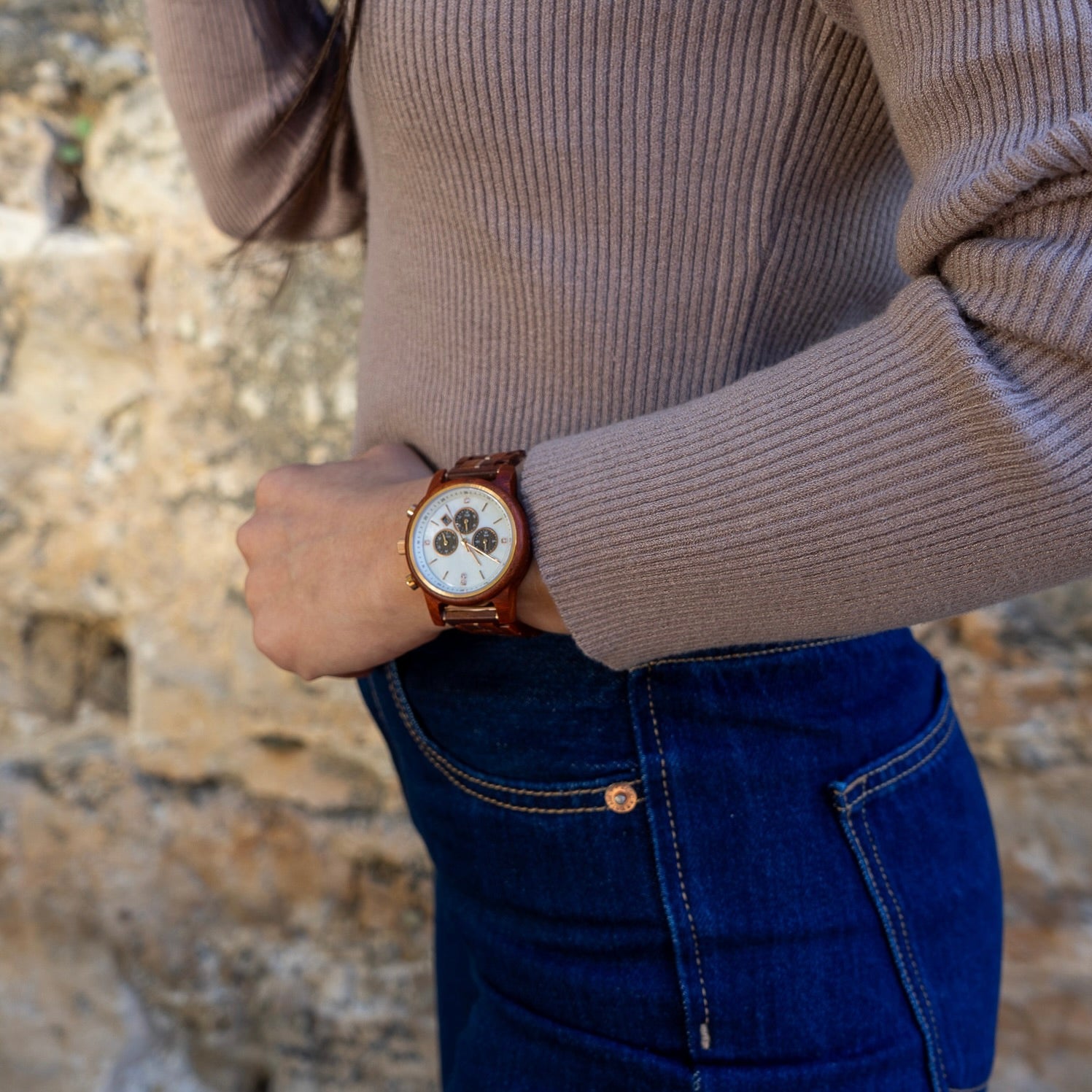 Nuestros relojes están meticulosamente tallados a mano utilizando solo madera seleccionada de fuentes sostenibles.