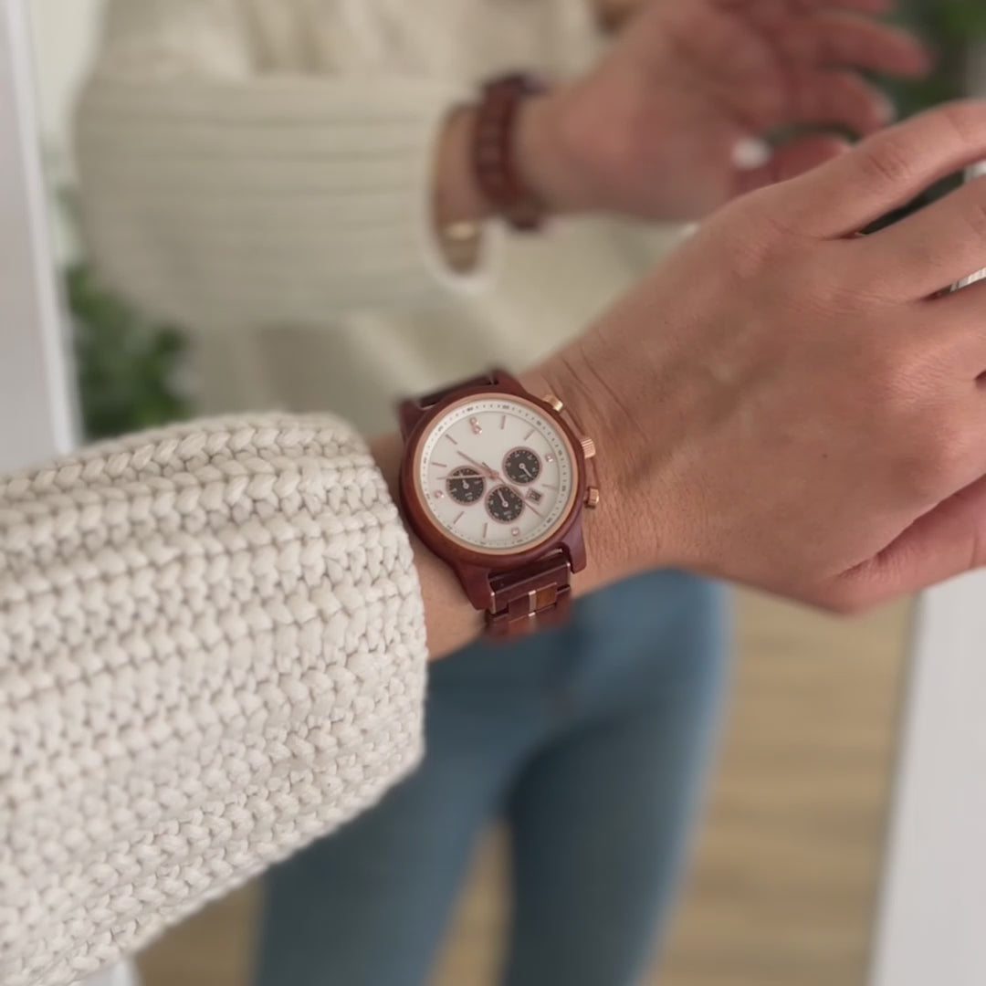 Primero le compré un reloj a mi chico y le encantó, así que esta vez decidí darme un capricho y pedí uno para mí. El diseño es precioso, la madera tiene un color muy bonito y es súper ligero. Totalmente recomendable! Estoy encantada con esta tienda. Gracias por todo equipo